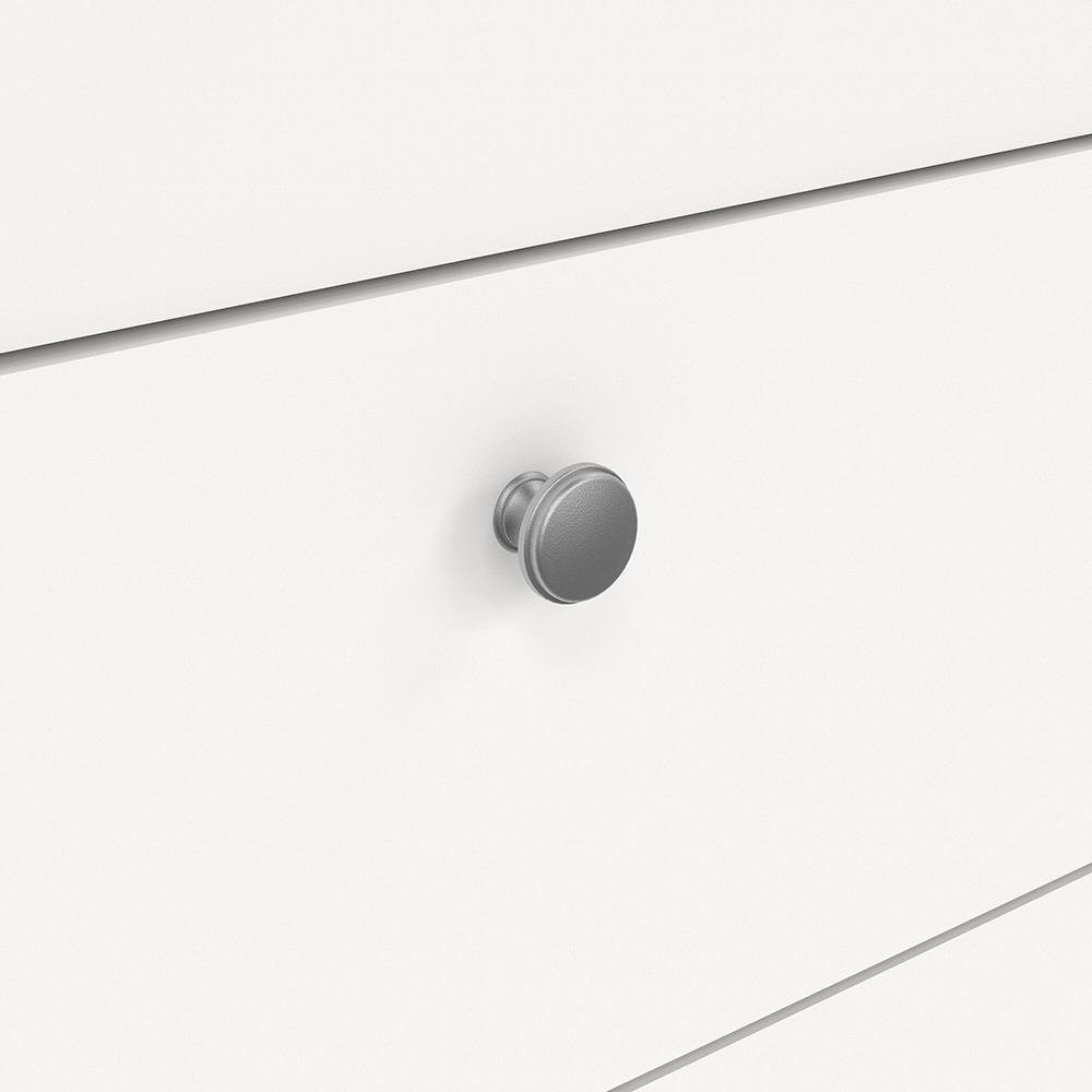 A contemporary chest of drawers in an elegant design complete with a simple metal handle, also available in contrasting matt black