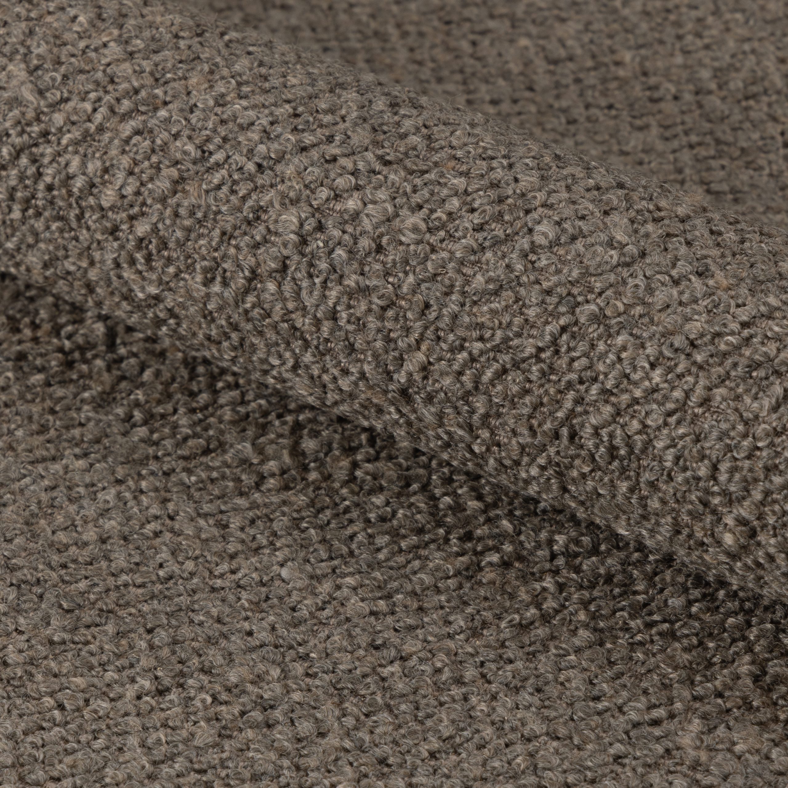 Elegant taupe dining chair with soft bouclé fabric and tufting detail. Timeless silhouette on round black steel legs, perfect for everyday dining and special moments.