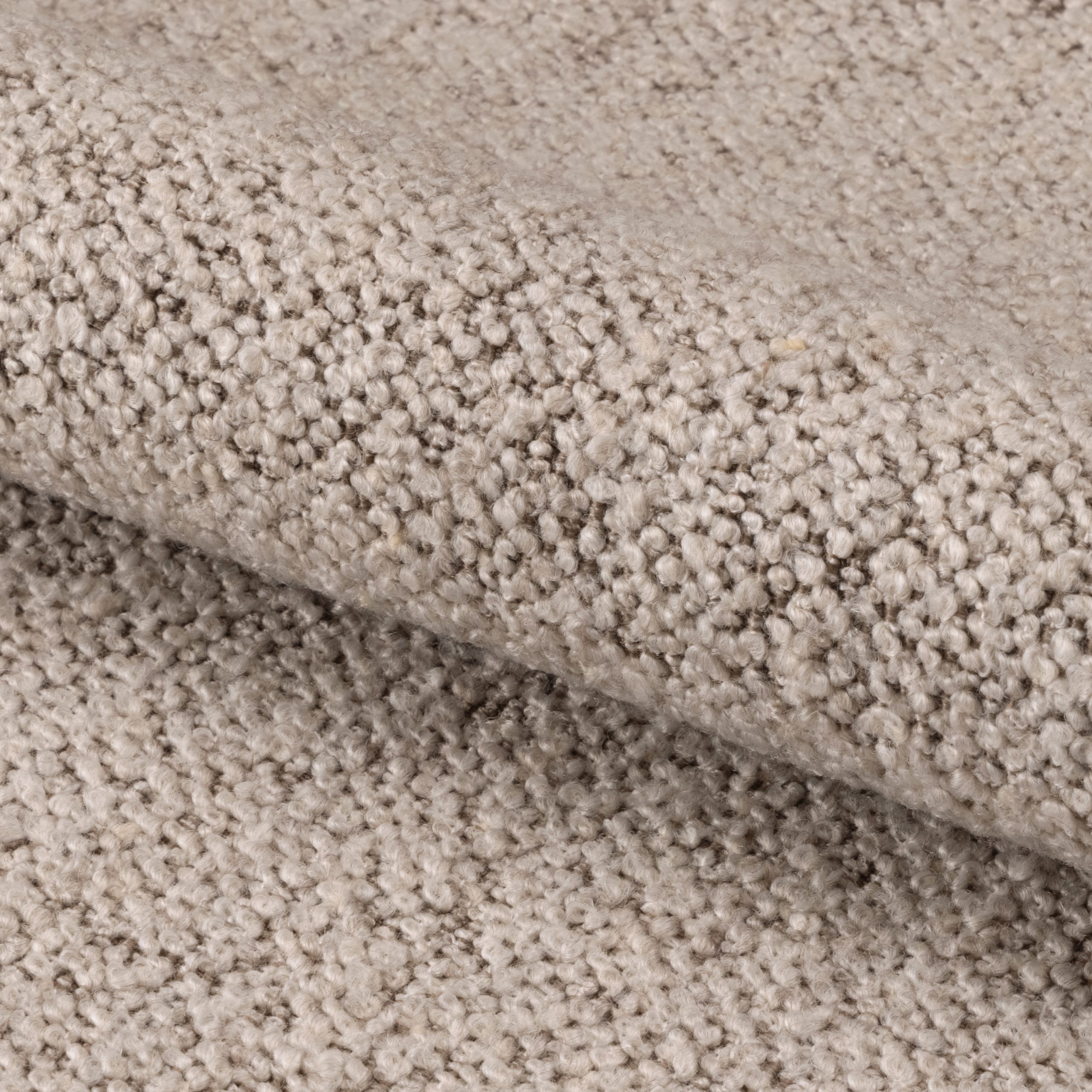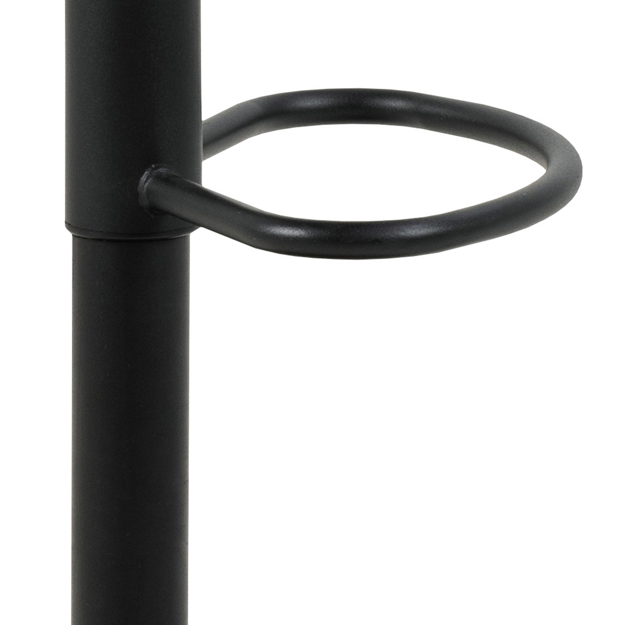 Perfect for any kitchen, this bar stool features soft beige bouclé fabric with tufting detail, a black steel trumpet base, gas lift, footrest, and swivel.
