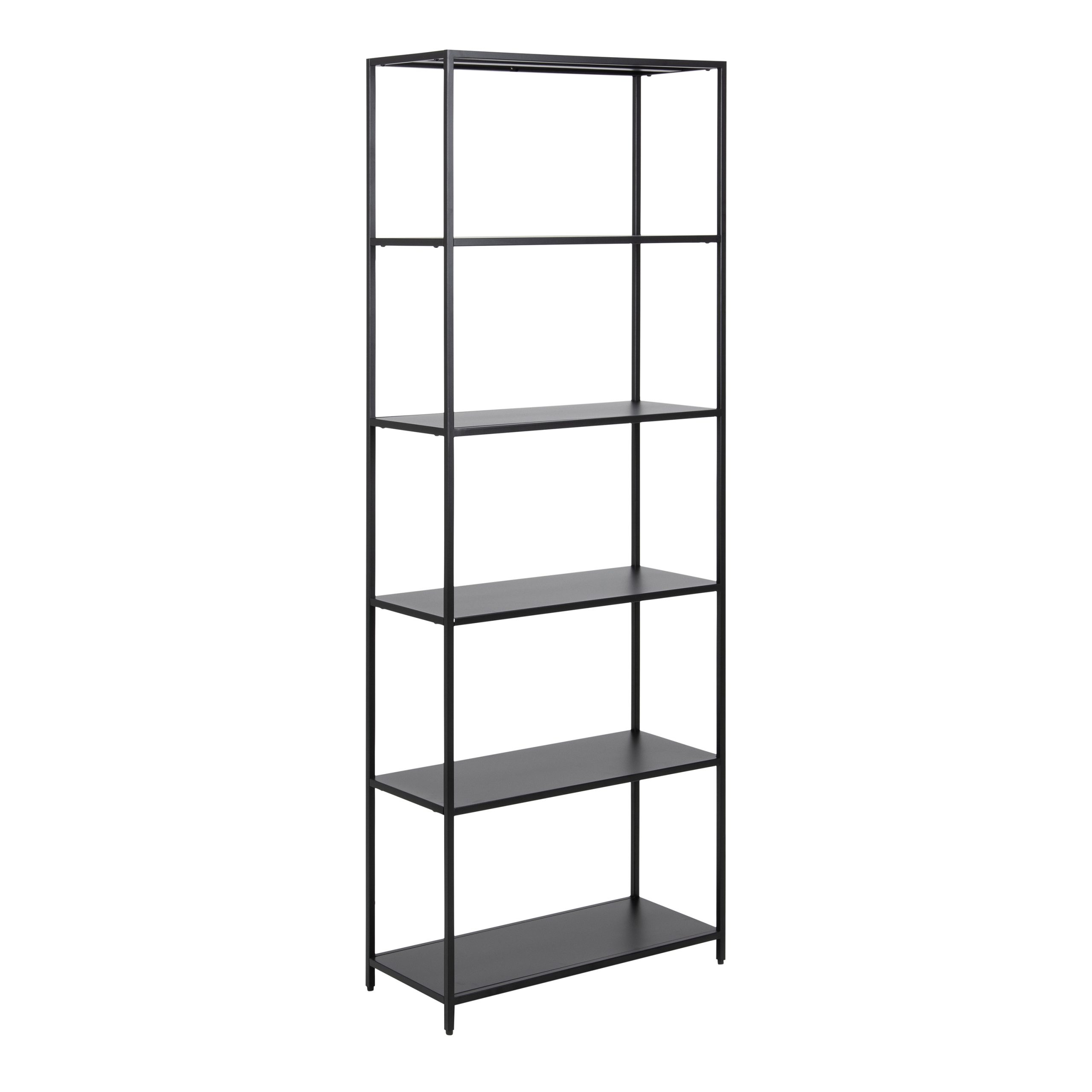 Crafted with a frame, 5 shelves, and base in matt black rough powder-coated steel, this bookcase exudes industrial charm. It offers ample storage space while adding a contemporary touch to your home décor.