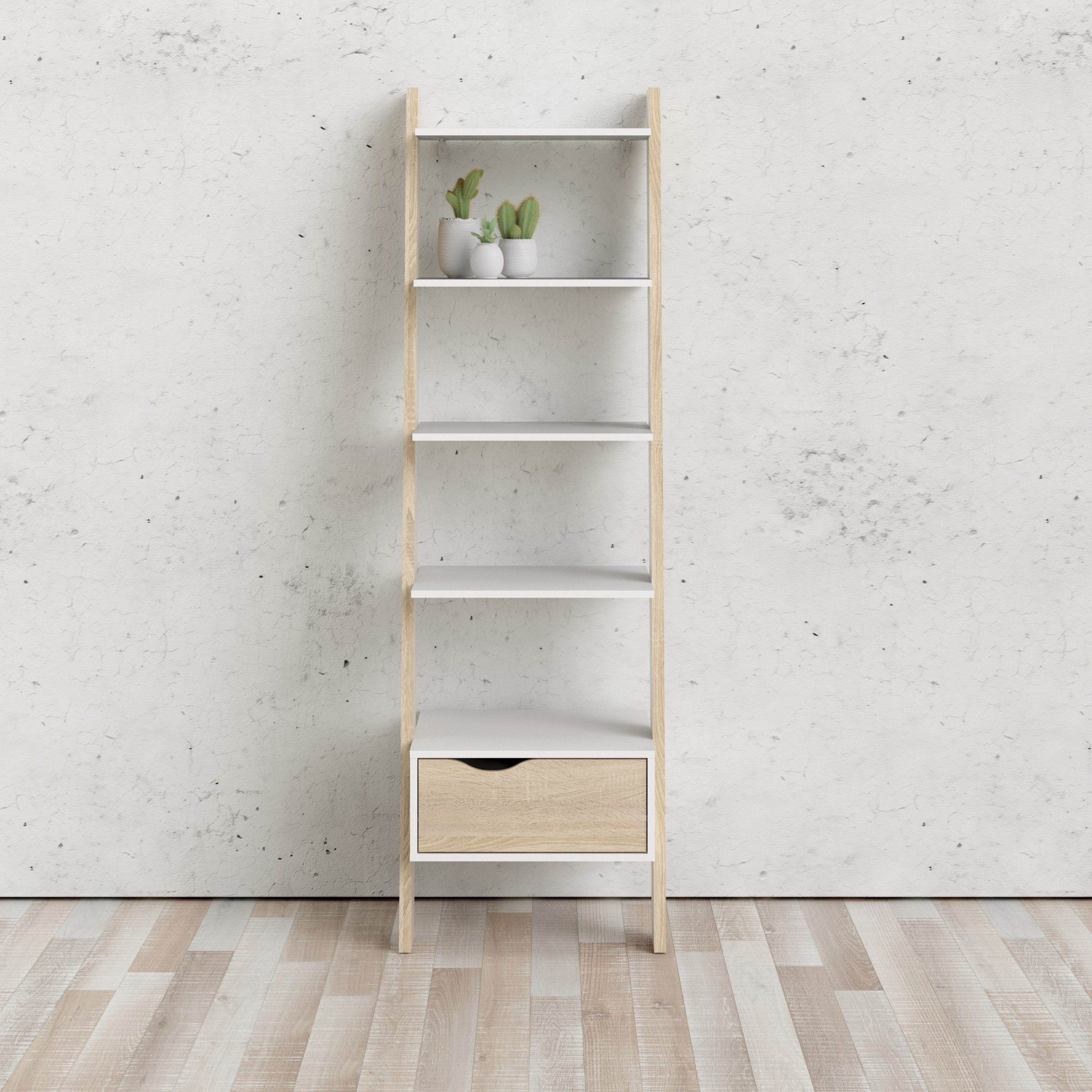 Oslo Leaning Bookcase 1 Drawer in White and Oak