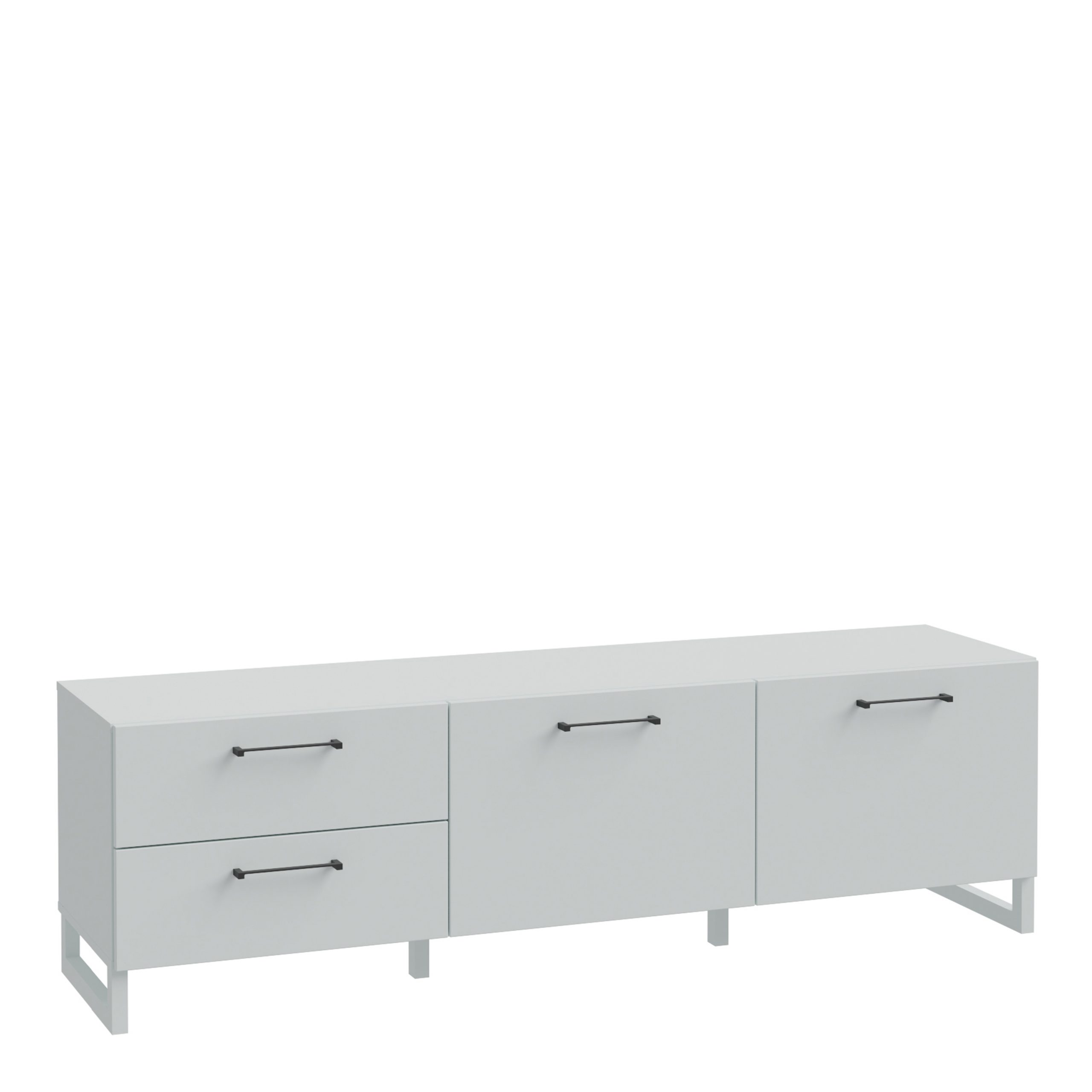 Enhance your living room with the Sali 2 Door 2 Drawer TV Unit in Light Grey. Modern design, durable ABS edging, and wall mounting required (fittings included).