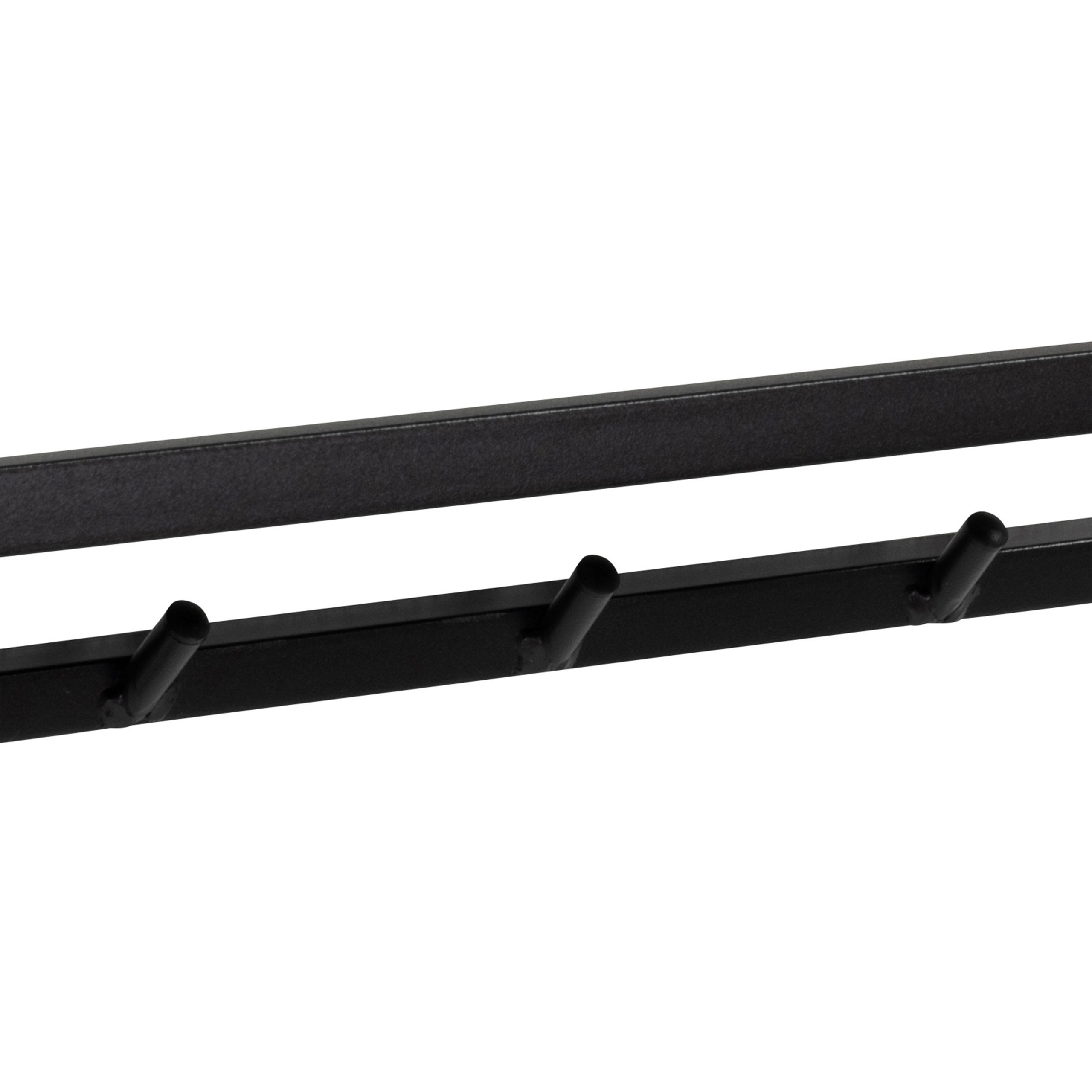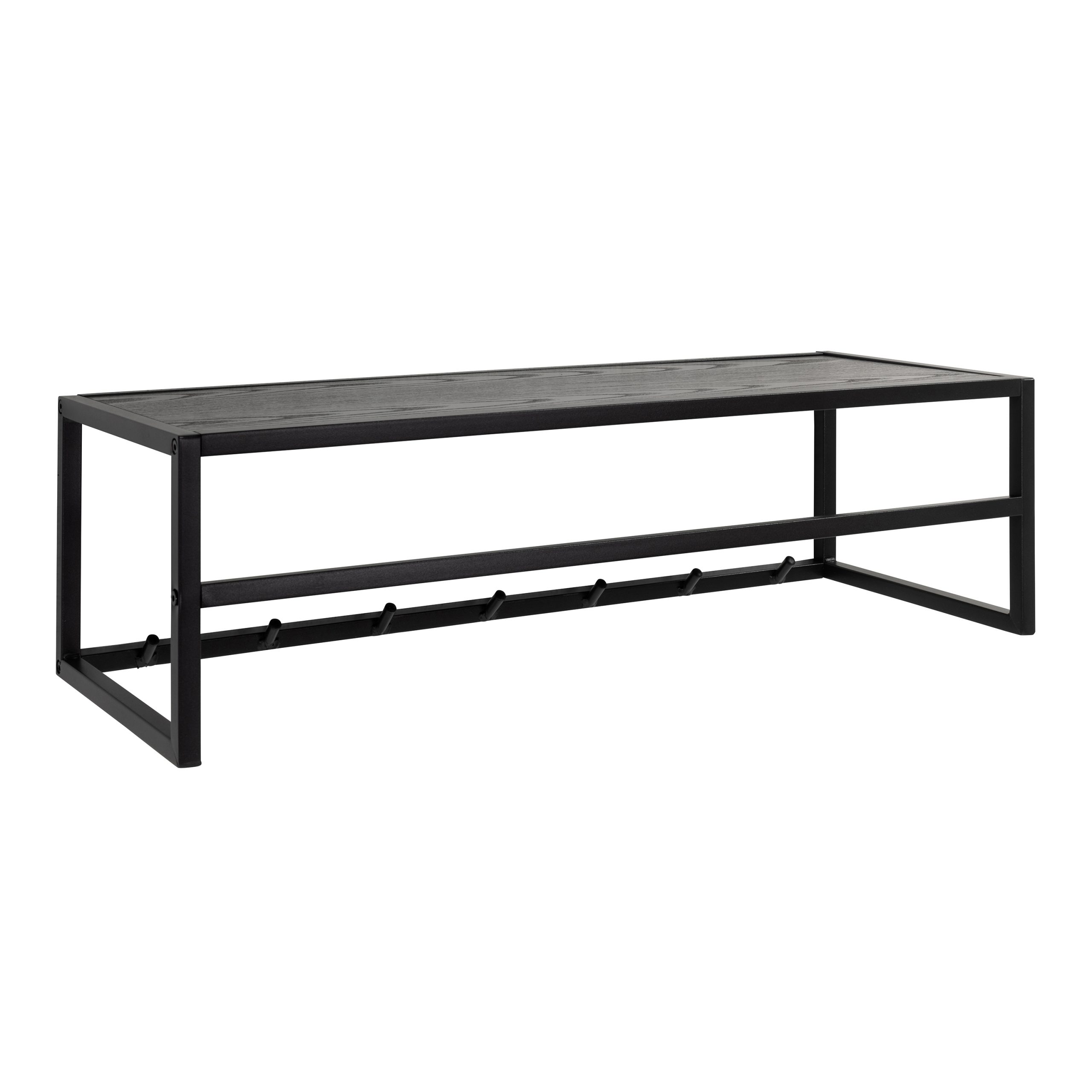 Discover the sleek and functional coat rack, a perfect blend of style and utility. Its matte black steel frame supports an ash black shelf, providing a modern touch to your entryway or room.