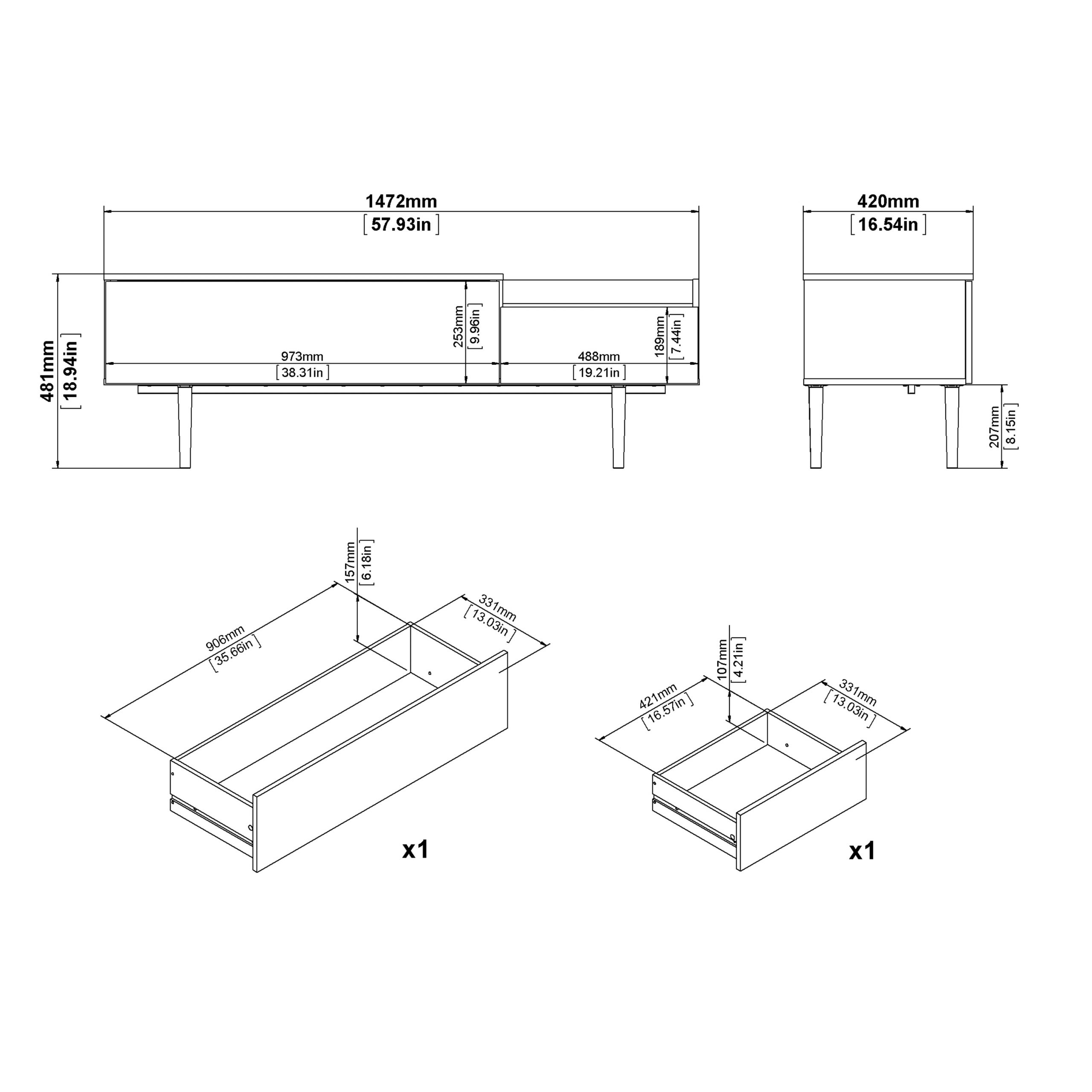 Unit Sideboard 2 Drawers 3 Doors in White and Walnut